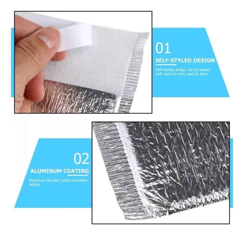 Sobre aluminizado para cadena de frío. Pensada especialmente para el transporte de productos que requieren de cadena de frío tales como medicamentos y alimentos. Mantiene por más tiempo la temperatura en su interior. Material inodoro, no tóxico, no contaminante, no propicia la aparición de hongos y es imputrescible.