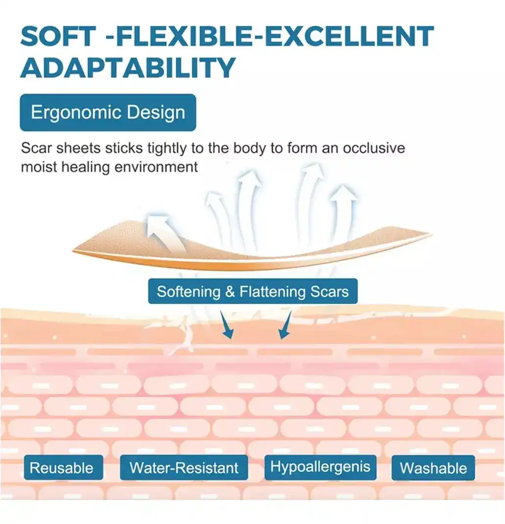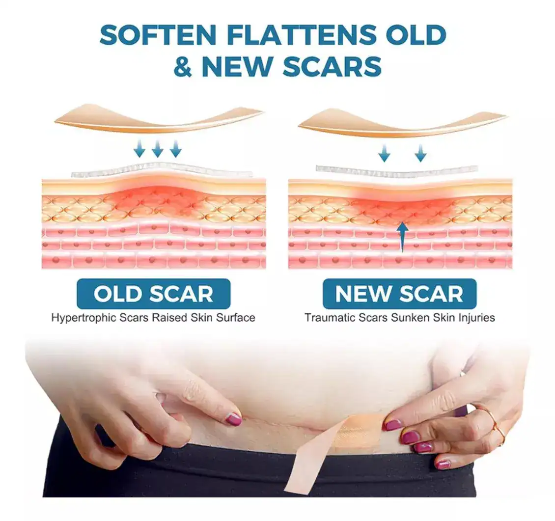 Tape silicona para cicatrices es una solución efectiva para reducir la apariencia de cicatrices en la piel. Este producto de alta calidad, hecho de gel de silicona, está diseñado para tratar diferentes tipos de cicatrices, incluyendo lesiones, quemaduras, queloides, cicatrices abdominales y arrugas.