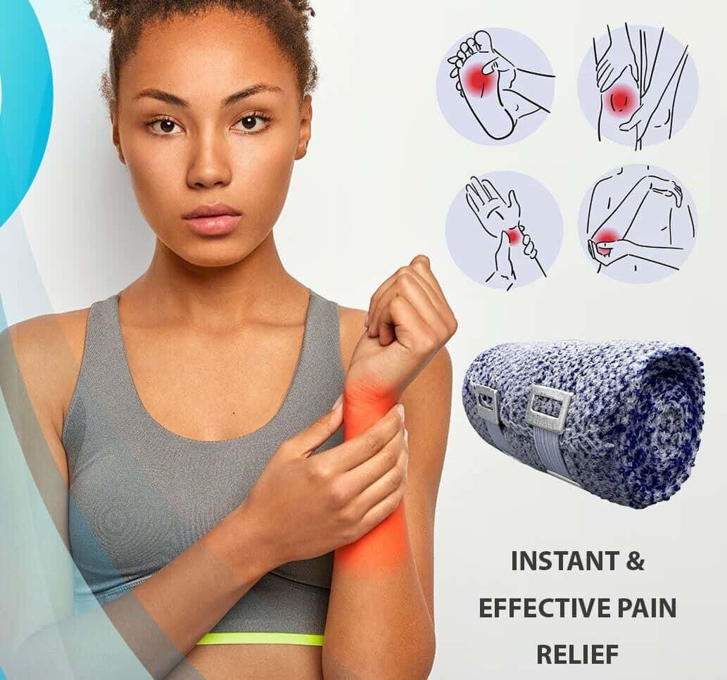Mientras que el enfriamiento instantáneo alivia el dolor, la compresión ayuda a controlar la hinchazón alrededor de la zona problemática acelerando los tiempos de recuperación. El vendaje es ligero y fácil de usar.